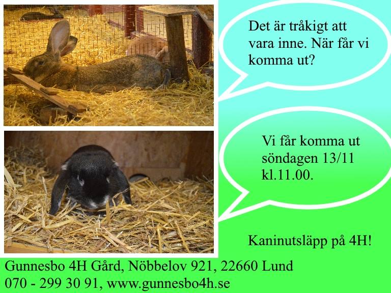 Välkomna på kaninutsläpp söndag kl. 11. Nu är Gunnesbo 4H:s kaniner vaccinerade mot gulsot och på söndag får de komma ut!